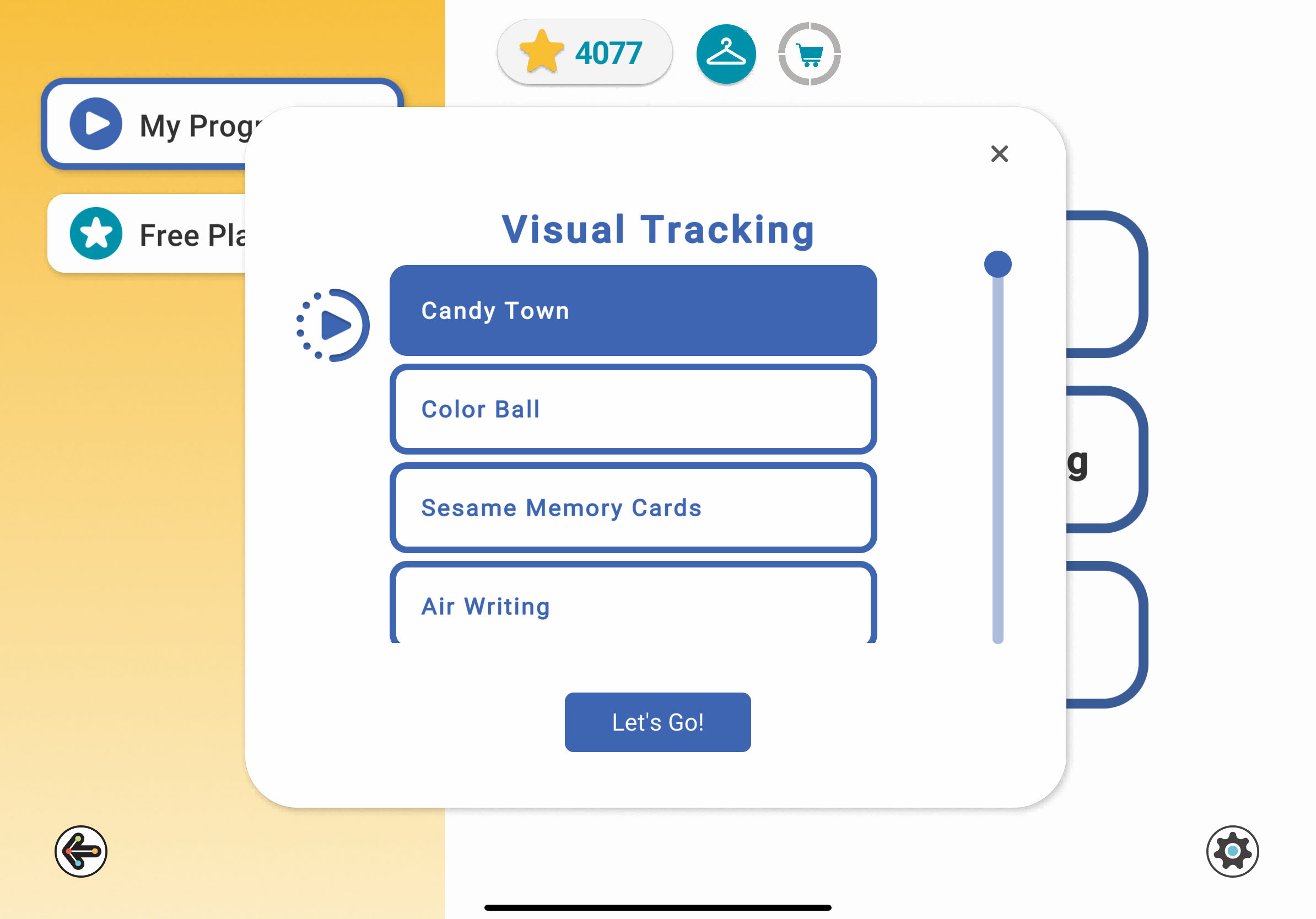 5. Press the name of the program you want to start and then press "Let's Go!" to start the program.