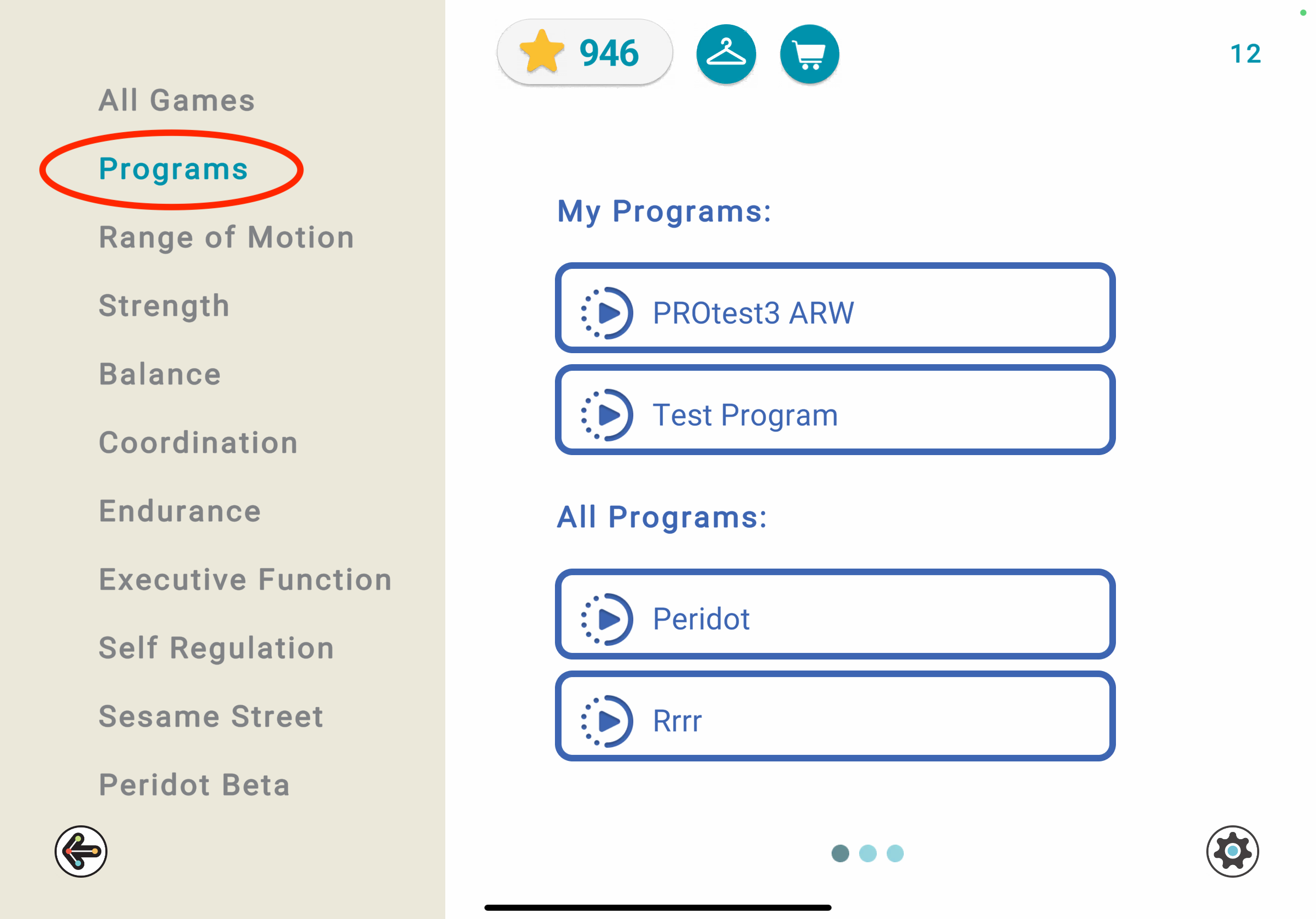 In our wellness app, ARWell, there are 5 pre-made programs: Balance, Brain Games, Coordination, Endurance, and Strengthening. These can be accessed in the "Programs" Menu after opening the ARWell app.