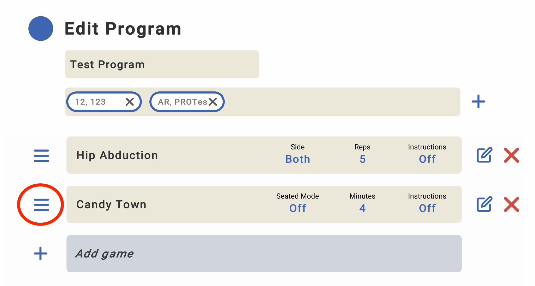 10. To re-order the games, press and drag the task using the three horizontal lines to the left of the game name.